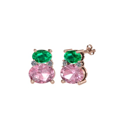Yeşil kuvars, pembe kuvars ve pırlanta 925 ayar rose altın kaplama gümüş küpe (0.072 karat)