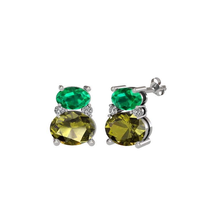 Yeşil kuvars, peridot ve beyaz zirkon 925 ayar gümüş küpe