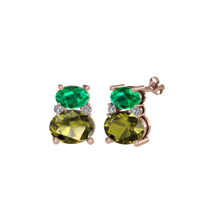 Yeşil kuvars, peridot ve beyaz zirkon 925 ayar rose altın kaplama gümüş küpe