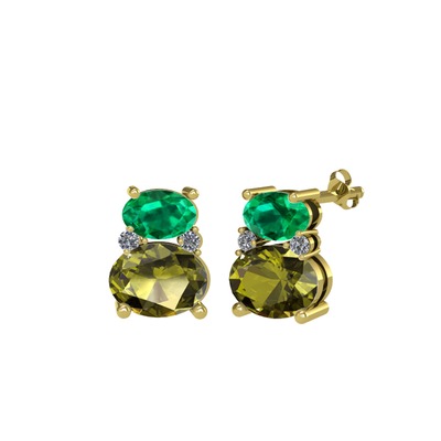 Yeşil kuvars, peridot ve pırlanta 14 ayar altın küpe (0.072 karat)