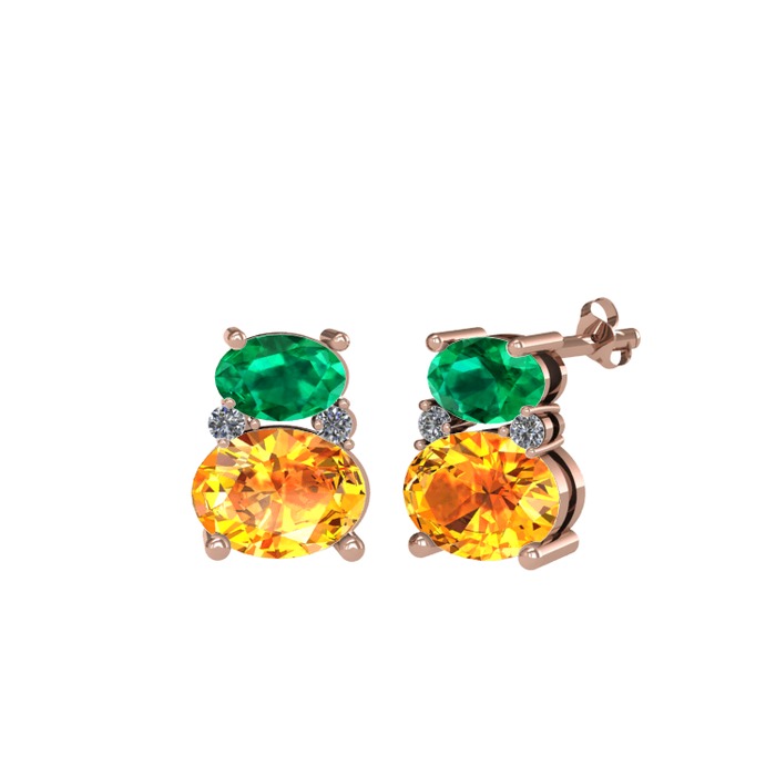 Yeşil kuvars, sitrin ve pırlanta 14 ayar rose altın küpe (0.072 karat)