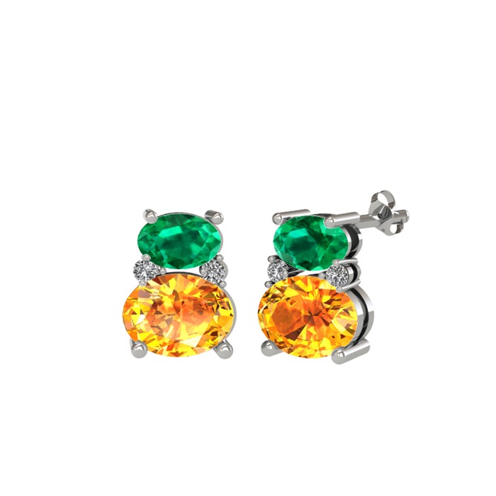 Yeşil kuvars, sitrin ve swarovski 8 ayar beyaz altın küpe