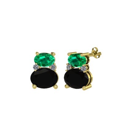 Yeşil kuvars, siyah zirkon ve pırlanta 925 ayar altın kaplama gümüş küpe (0.072 karat)