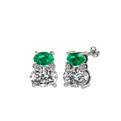 Yeşil kuvars ve swarovski 8 ayar beyaz altın küpe