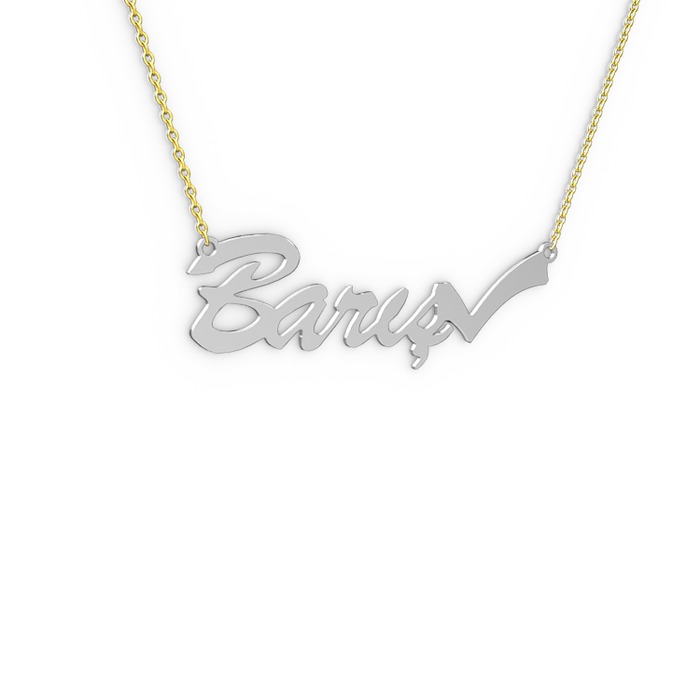 14 ayar beyaz altın kolye (5 karakterli el yazısı, 40 cm altın rolo zincir)