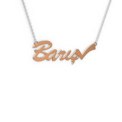 14 ayar rose altın kolye (5 karakterli el yazısı, 40 cm beyaz altın rolo zincir)