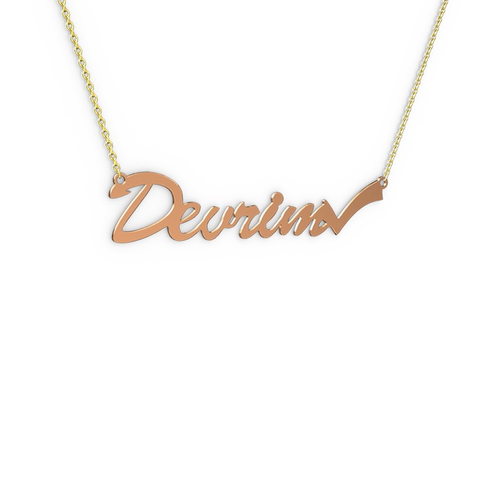 14 ayar rose altın kolye (6 karakterli el yazısı, 40 cm altın rolo zincir)
