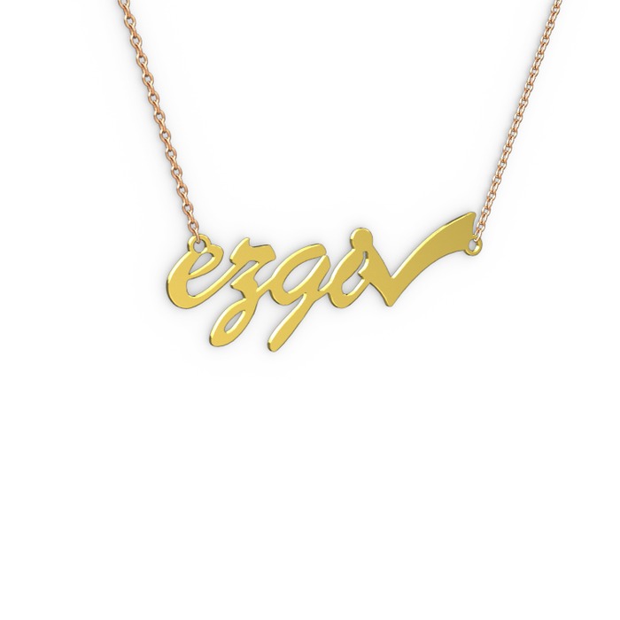 18 ayar altın kolye (4 karakterli el yazısı, 40 cm rose altın rolo zincir)