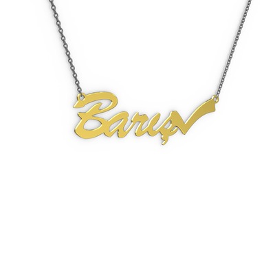 18 ayar altın kolye (5 karakterli el yazısı, 40 cm gümüş rolo zincir)