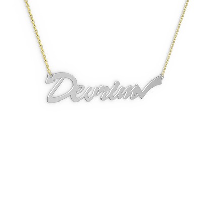 18 ayar beyaz altın kolye (6 karakterli el yazısı, 40 cm altın rolo zincir)