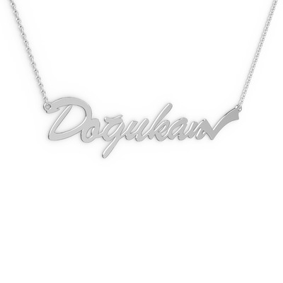 18 ayar beyaz altın kolye (7 karakterli el yazısı, 40 cm beyaz altın rolo zincir)
