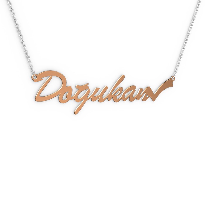 8 ayar rose altın kolye (7 karakterli el yazısı, 40 cm beyaz altın rolo zincir)