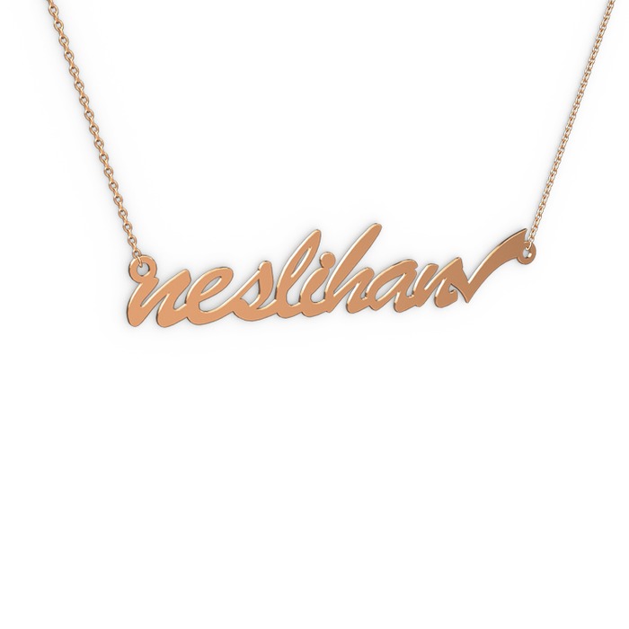 8 ayar rose altın kolye (8 karakterli el yazısı, 40 cm rose altın rolo zincir)