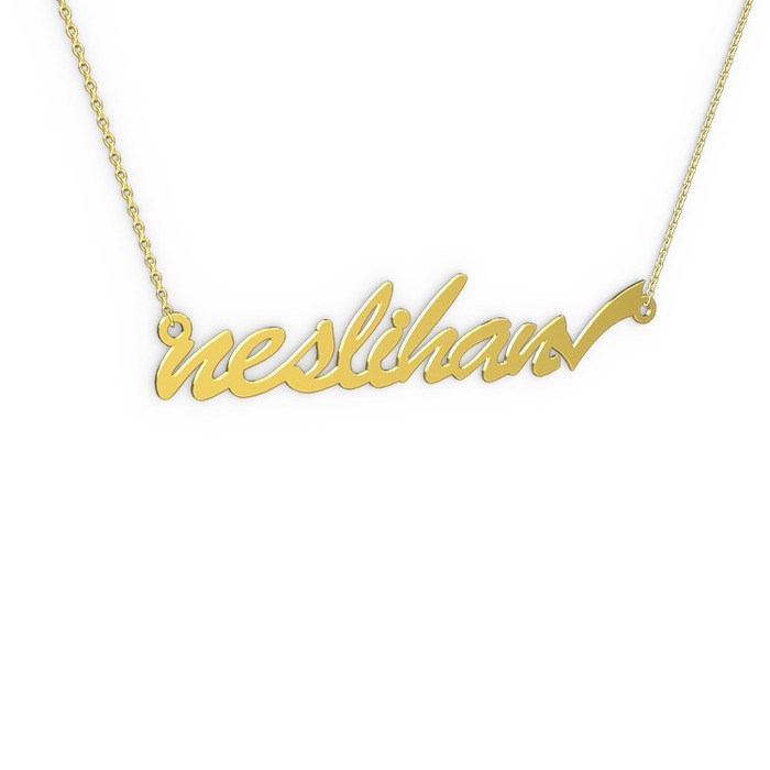 925 ayar altın kaplama gümüş kolye (8 karakterli el yazısı, 40 cm altın rolo zincir)