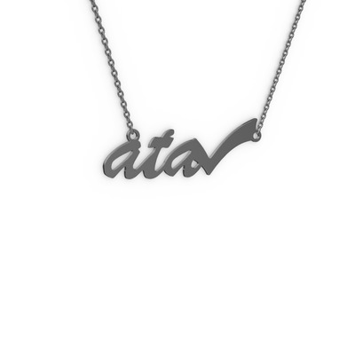 925 ayar siyah rodyum kaplama gümüş kolye (3 karakterli el yazısı, 40 cm gümüş rolo zincir)