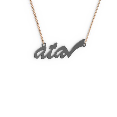 925 ayar siyah rodyum kaplama gümüş kolye (3 karakterli el yazısı, 40 cm rose altın rolo zincir)