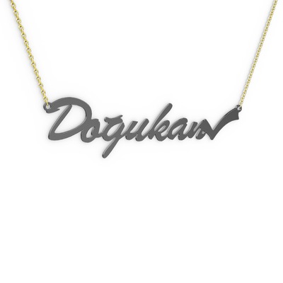 925 ayar siyah rodyum kaplama gümüş kolye (7 karakterli el yazısı, 40 cm gümüş rolo zincir)