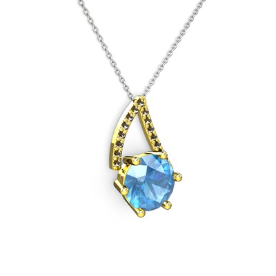 Akuamarin ve dumanlı kuvars 14 ayar altın kolye (40 cm beyaz altın rolo zincir)
