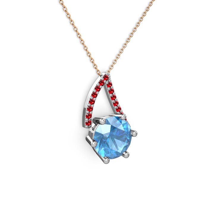 Akuamarin ve garnet 18 ayar beyaz altın kolye (40 cm gümüş rolo zincir)