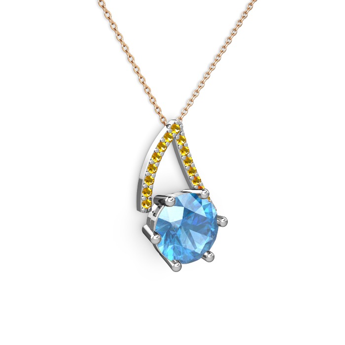 Akuamarin ve sitrin 18 ayar beyaz altın kolye (40 cm gümüş rolo zincir)