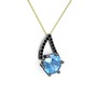 Akuamarin ve siyah zirkon 925 ayar siyah rodyum kaplama gümüş kolye (40 cm altın rolo zincir)