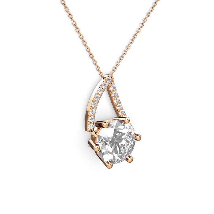 Beyaz zirkon 14 ayar rose altın kolye (40 cm rose altın rolo zincir)