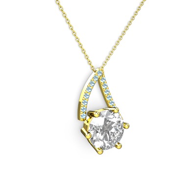 Beyaz zirkon ve akuamarin 14 ayar altın kolye (40 cm gümüş rolo zincir)