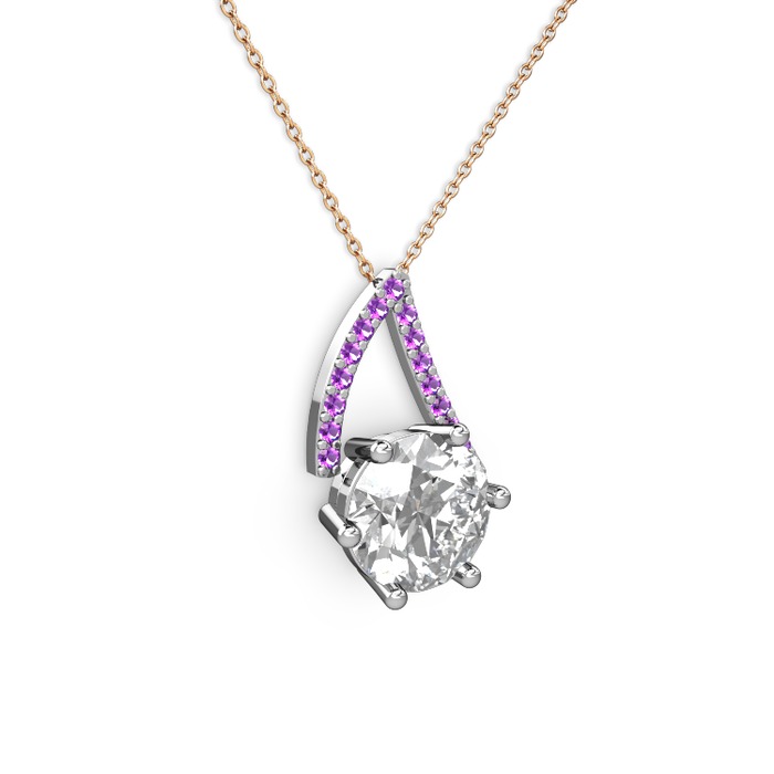 Beyaz zirkon ve ametist 8 ayar beyaz altın kolye (40 cm rose altın rolo zincir)