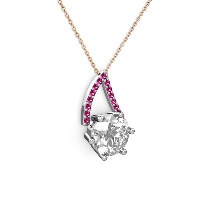 Beyaz zirkon ve rodolit garnet 18 ayar beyaz altın kolye (40 cm rose altın rolo zincir)