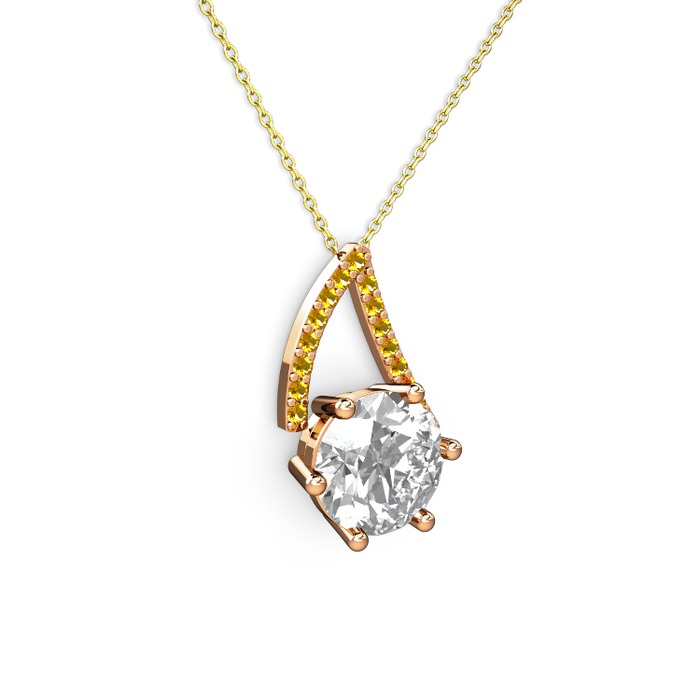 Beyaz zirkon ve sitrin 925 ayar rose altın kaplama gümüş kolye (40 cm altın rolo zincir)