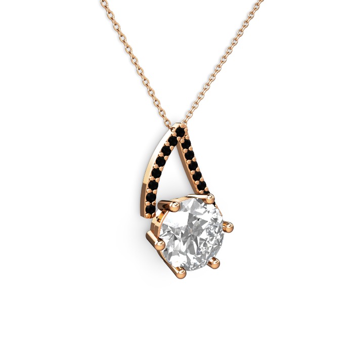 Beyaz zirkon ve siyah zirkon 925 ayar rose altın kaplama gümüş kolye (40 cm rose altın rolo zincir)