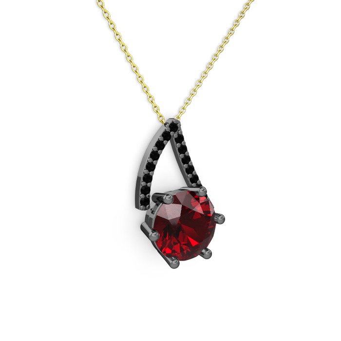 Garnet ve siyah zirkon 925 ayar siyah rodyum kaplama gümüş kolye (40 cm altın rolo zincir)