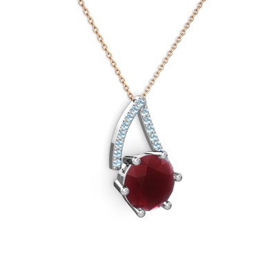 Kök yakut ve akuamarin 14 ayar beyaz altın kolye (40 cm rose altın rolo zincir)