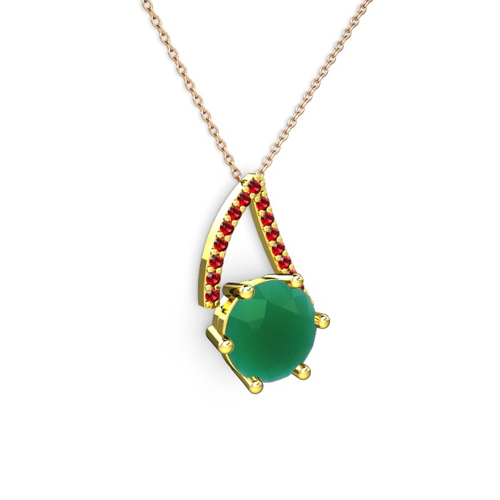 Kök zümrüt ve garnet 925 ayar altın kaplama gümüş kolye (40 cm rose altın rolo zincir)