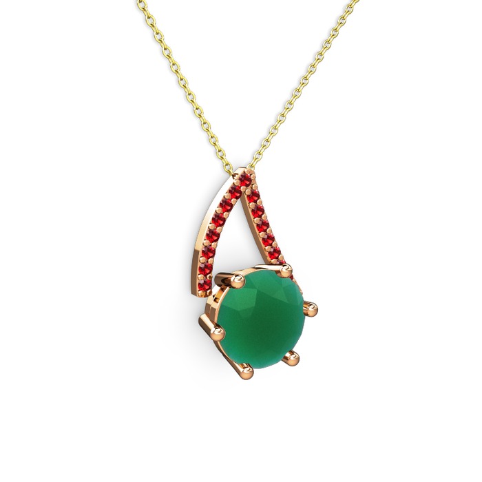 Kök zümrüt ve garnet 925 ayar rose altın kaplama gümüş kolye (40 cm gümüş rolo zincir)