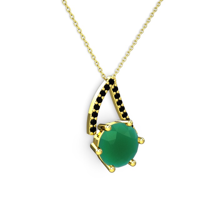 Kök zümrüt ve siyah zirkon 8 ayar altın kolye (40 cm altın rolo zincir)