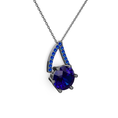 Lab safir 925 ayar siyah rodyum kaplama gümüş kolye (40 cm gümüş rolo zincir)