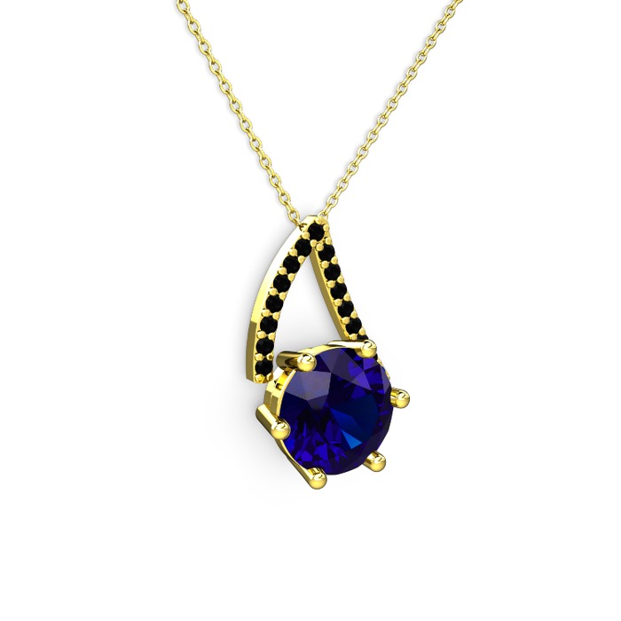 Lab safir ve siyah zirkon 14 ayar altın kolye (40 cm gümüş rolo zincir)