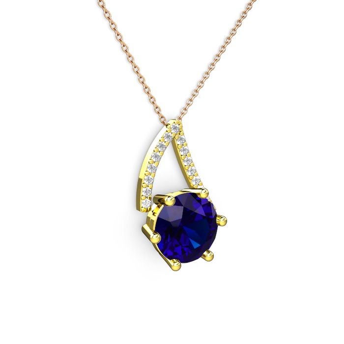 Lab safir ve swarovski 925 ayar altın kaplama gümüş kolye (40 cm rose altın rolo zincir)