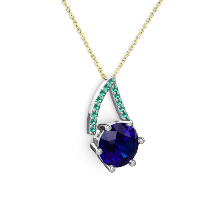 Lab safir ve yeşil kuvars 8 ayar beyaz altın kolye (40 cm altın rolo zincir)