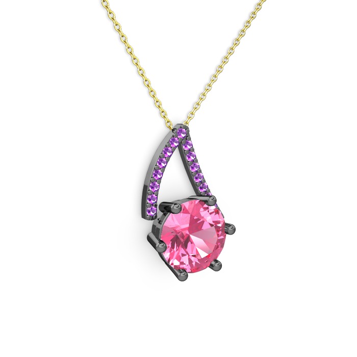 Pembe kuvars ve ametist 925 ayar siyah rodyum kaplama gümüş kolye (40 cm gümüş rolo zincir)
