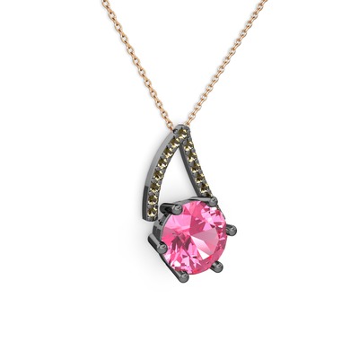 Pembe kuvars ve dumanlı kuvars 925 ayar siyah rodyum kaplama gümüş kolye (40 cm rose altın rolo zincir)