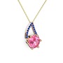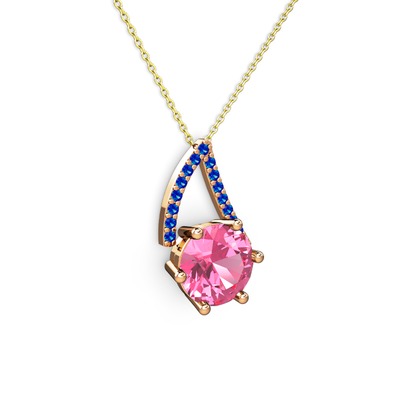 Pembe kuvars ve lab safir 14 ayar rose altın kolye (40 cm altın rolo zincir)