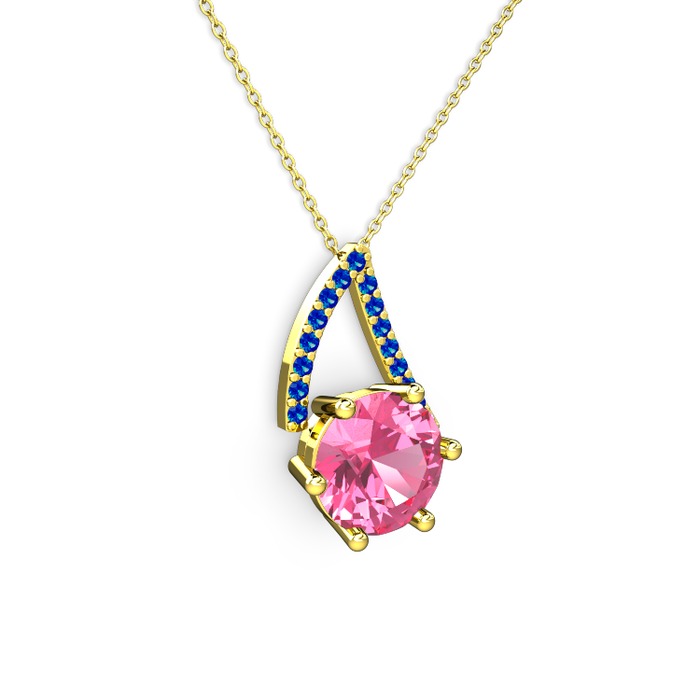 Pembe kuvars ve lab safir 18 ayar altın kolye (40 cm altın rolo zincir)