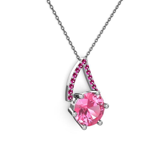 Pembe kuvars ve rodolit garnet 8 ayar beyaz altın kolye (40 cm gümüş rolo zincir)