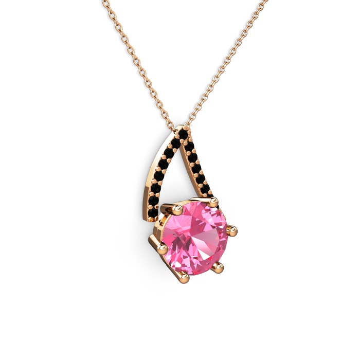 Pembe kuvars ve siyah zirkon 8 ayar rose altın kolye (40 cm rose altın rolo zincir)