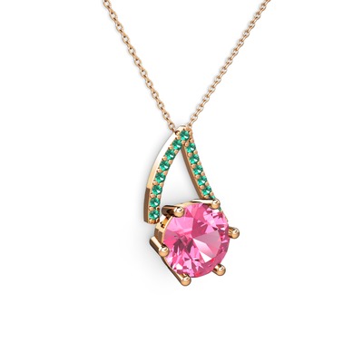 Pembe kuvars ve yeşil kuvars 8 ayar rose altın kolye (40 cm gümüş rolo zincir)