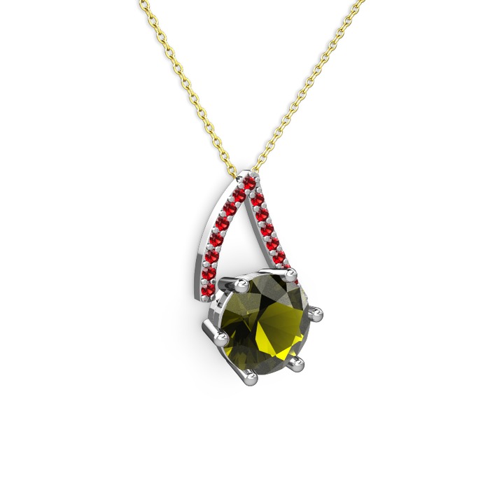 Peridot ve garnet 18 ayar beyaz altın kolye (40 cm altın rolo zincir)