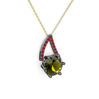 Peridot ve garnet 925 ayar siyah rodyum kaplama gümüş kolye (40 cm altın rolo zincir)