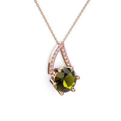 Peridot ve pembe kuvars 18 ayar rose altın kolye (40 cm rose altın rolo zincir)